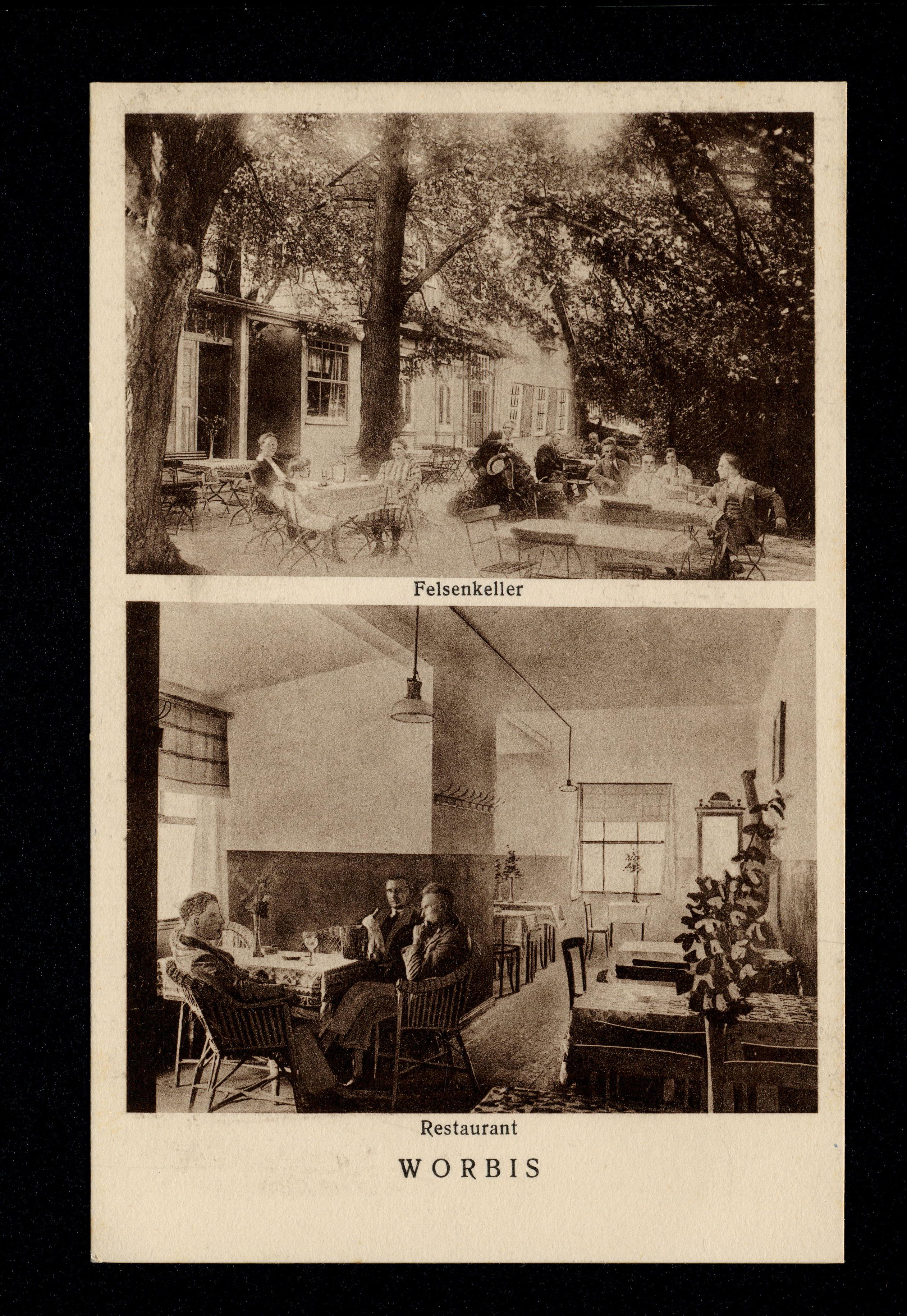 Ort Worbis Motive Felsenkeller Restaurant Format klein Verlag Aloys Mecke, Duderstadt Bestell- oder Individualnummer Nr. 382 s 79 Tags Aug. Gassmann Gasthaus